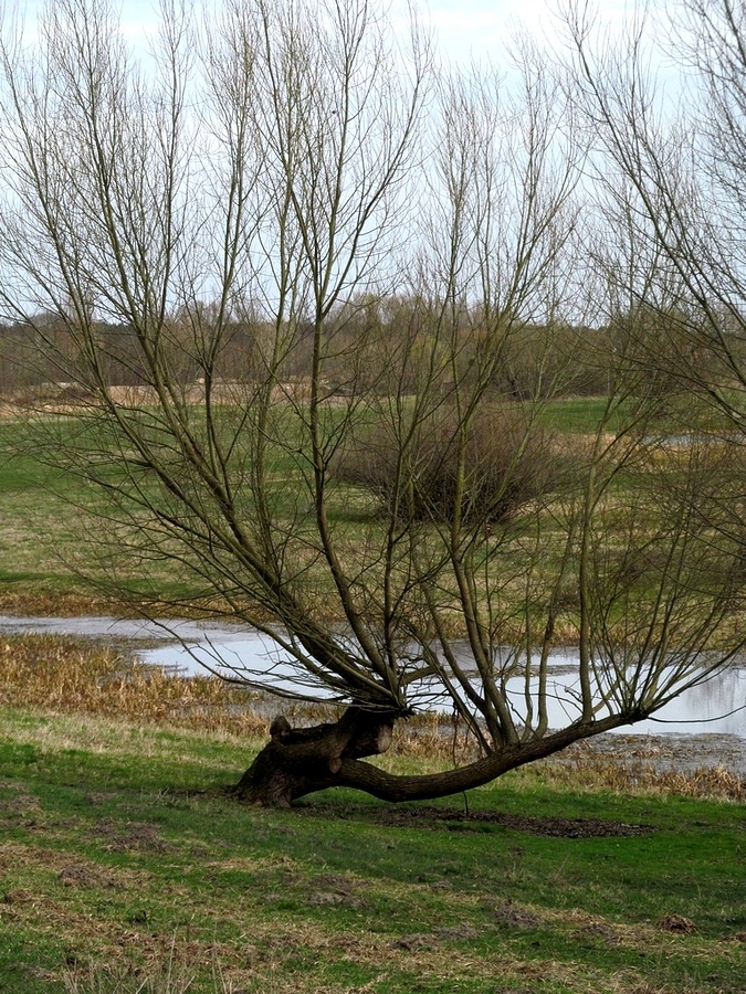 To drzewo (na zdjęciu) samo wygięło się, być może ze starości.