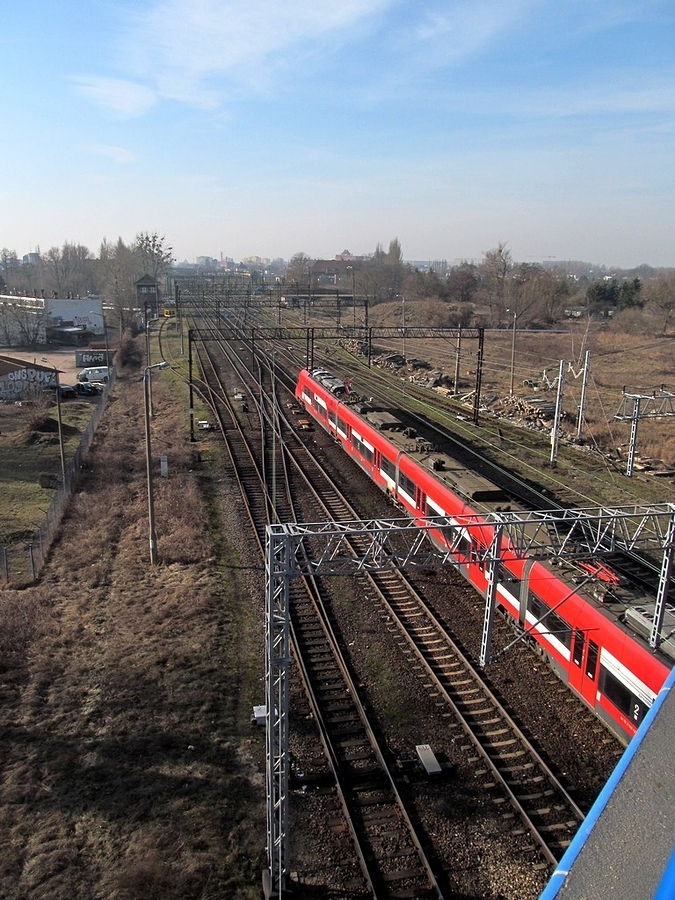 Ten pociąg, który widać na załączonej fotografii, zanim dojedzie do dworca Toruń Wschodni, przebędzie jeszcze około 1 km.