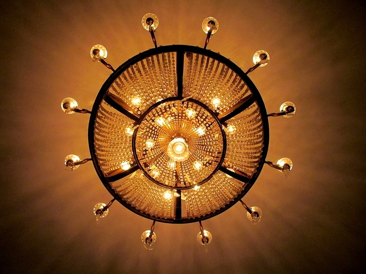 To świecące koło (na zdjęciu) to żyrandol, który wisi nad widownią w Teatrze im. Wilama Horzycy w Toruniu. Żeby cokolwiek przy nim zrobić (dokonać jakiejkolwiek naprawy, wymiany żarówki, czy chociażby odkurzyć), trzeba opuścić go bezpośrednio na widownię. Ta operacja wymaga od pracowników technicznych cierpliwości, umiejętności i precyzji, dlatego wykonywana jest raz na kilka lat. A taką właśnie operację nie tak dawno w Teatrze przeprowadzono.