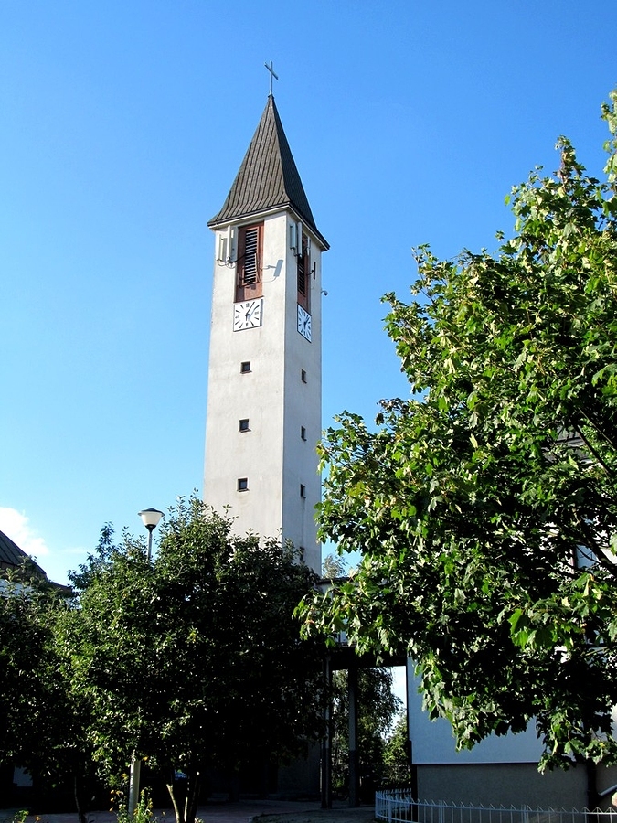 Ta szpiczasta wieża (na zdjęciu) góruje nie tylko nad świątynią pw. Najświętszej Maryi Panny Wspomożenia Wiernych w Aleksandrowie Kujawskim, do której należy, ale i nad osiedlem, na którym stoi. Budowę kościoła rozpoczęto w 1986 r., a msze święte zaczęto tu odprawiać w 1991 r., początkowo w tzw. dolnym kościele. Dopiero od 24 grudnia 2009 r. uruchomiono górny kościół mimo, iż nie był jeszcze całkowicie ukończony i wyposażony. Owa wieża pełni funkcję dzwonnicy.