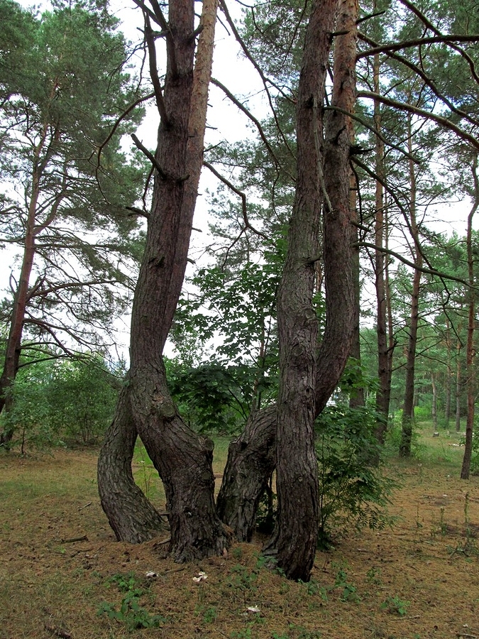 Nie często zdarza się, abym w lesie natrafił na czworaczki drzewa rosnące obok siebie, a w dodatku powyginane.
