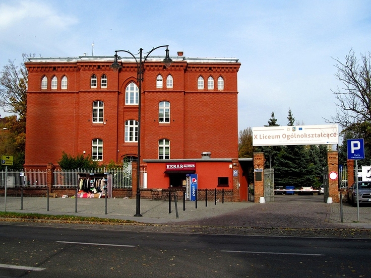 X Liceum Ogólnokształcące im. prof. Stefana Banacha w Toruniu mieści się przy pl. św. Katarzyny 9 w Toruniu, w koszarach po byłej jednostce wojskowej. To ogromny teren, jak na szkołę, która posiada do dyspozycji kilka obiektów. Dlatego znalazło się tu centrum sportowe, w skład którego wchodzi: pełnowymiarowa hala sportowa z widownią (dla siatkówki, koszykówki, piłki ręcznej i halowej piłki nożnej), salka (z widownią) przystosowana do uprawiania gimnastyki i judo (swoje zajęcia ma tutaj Toruński Klub Judo), doskonale wyposażona siłownia, a także boisko do piłki nożnej i piłki koszykowej. Na terenie szkoły odbywają się też sportowe zajęcia pozalekcyjne z koszykówki, siatkówki oraz na siłowni, a co roku  turnieje szachowe. Ponadto, Liceum dysponuje dwiema pracowniami komputerowymi ze sprzętem wysokiej klasy, salę multimedialną oraz doskonale wyposażone sale lekcyjne: chemiczną, fizyczną, biologii, geografii, matematyki i języka polskiego. Biblioteka natomiast posiada ponad 20 tys. egzemplarzy różnych gatunków literackich; jest tu też czytelnia wraz ze stanowiskami komputerowymi i dostępem do Internetu. Na zdjęciu: Główne wejście do szkoły.