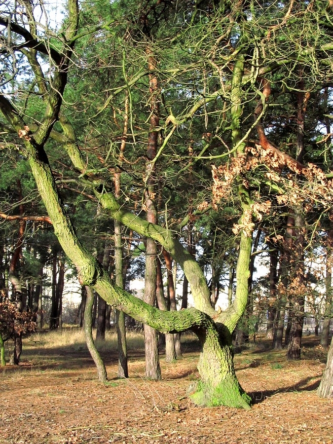 Spośród wielu innych drzew w tym lesie, to (na zdjęciu) wyróżnia się swoim kształtem, dlatego zwróciło moją uwagę.