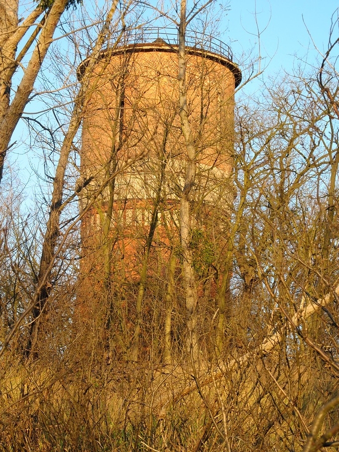 Ta wieża ciśnień na Podgórzu w Toruniu (na zdjęciu) swego czasu należała do gazowni i wodociągów miasta Podgórz (obecnie jest to lewobrzeżna dzielnica Torunia). Powstała w stylu historyzującym w 1904 r. wówczas wchodziła w skład niemieckiego komunalnego przedsiębiorstwa Stadtgas und Wasserwerk Podgórz, a jej pojemnik miał pojemność około 300 mł. W styczniu 1945 r. górna część wieży została zniszczona, ale na przełomie lat czterdziestych i pięćdziesiątych XX wieku odbudowano ją, jednak wewnątrz zainstalowano stalowy pojemnik tylko o pojemności 173 mł, co znaczy, że był o niemal połowę mniejszy od poprzedniego. Wieża funkcjonowała do końca lat siedemdziesiątych XX wieku.