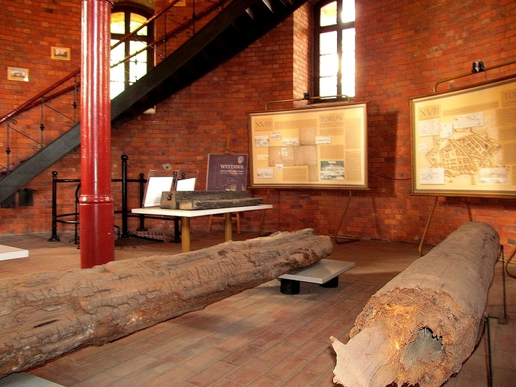 We wnętrzu wieży ciśnień stojącej na Bielanach w Toruniu tuż przy Wojewódzkim Szpitalu Zespolonym, można zapoznać się z historią toruńskich wodociągów i kanalizacji za pomocą plansz, jakie zostały tam rozmieszczone, ale także zobaczyć różne eksponaty z przeszłości, jak chociażby drewniane rury (na zdjęciu). Więcej o historii tej wieży można dowiedzieć się z artykułu pt. Muzeum Inżynierii Komunalnej w Toruniu, jaki opublikowałem w ekskluzywnym czasopiśmie krajoznawczo-turystycznym czasopiśmie POZNAJ SWÓJ KRAJ (nr 9/2017). Polecam tę lekturę.