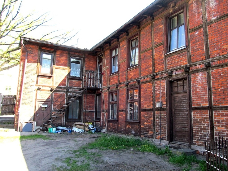 Nazwa ul. Wiązowa wiąże się ze 150-letnim wiązem polnym, uważanym za pomnik przyrody, jaki przy tej ulicy rósł jeszcze do niedawna. Drzewa już nie ma, ale nazwa ulicy pozostała, tak samo, jak kamienica z muru pruskiego, która tuż przy wiązie (teraz już tylko pniu) stoi do dziś. Na zdjęciu: Fragment niewielkiego podwórza należącego do tej kamienicy.