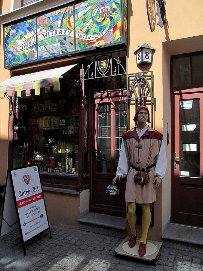 Średniowieczny Toruń był jednym z ważniejszych ośrodków witrażownictwa w Polsce. Do tej tradycji nawiązuje Pracownia Witraży INTEK-ART, która mieści się przy ul. Szewskiej 8 (na zdjęciu). To tu stosuje się jeszcze techniki średniowiecznego warsztatu witrażowego, które już dawno zostały przez innych witrażystów zapomniane.