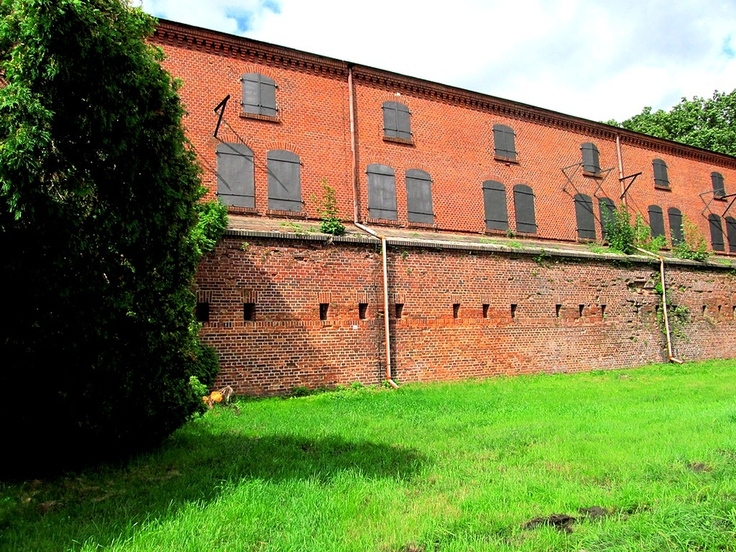 Ponad mur z czerwonej cegły od strony koryta Wisły w pobliżu obecnego mostu kolejowego (dawniej była to przeprawa kolejowo-drogowa, bo innej w Toruniu nie było), wznosi się magazyn pontonów i czółen mostowych (na zdjęciu). Magazyn zbudowany został w latach osiemdziesiątych XIX wieku i służył wojsku, które przechowywało w nim części mostu pontonowego na wypadek zniszczenia stalowej przeprawy przez Wisłę. Na szczęście nigdy nie było potrzeby użycia pontonów w praktyce.