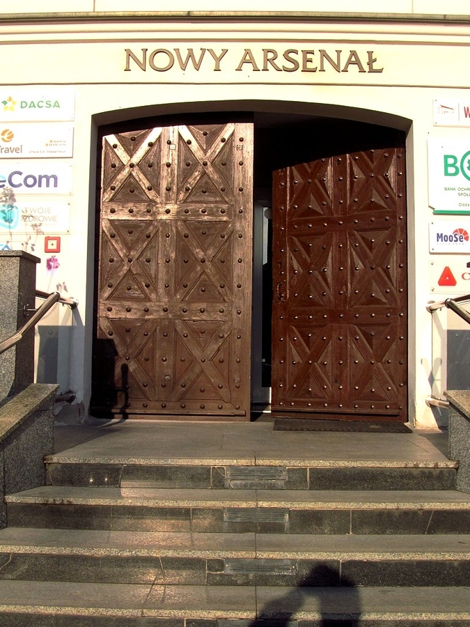 Obiekt stojący przy ul. Dominikańskiej 7/9 w Toruniu, błędnie nazywany Nowym Arsenałem, powstał w miejscu zburzonego w 1834 roku klasztoru Dominikanów i gotyckiego kościoła pw. św. Mikołaja. W XIX wieku pełnił funkcję magazynu żywnościowego Twierdzy Toruń, a obecnie mieszczą się tu pomieszczenia biurowe kilku różnych firm. Na zdjęciu: Drzwi wejściowe do budynku, jedno z kilku, jakie są tu zamontowane.