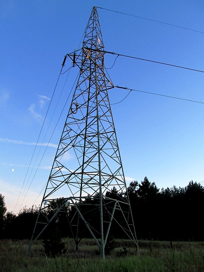 Na zdjęciu: Typowy słup kratownicowy wysokiego napięcia.