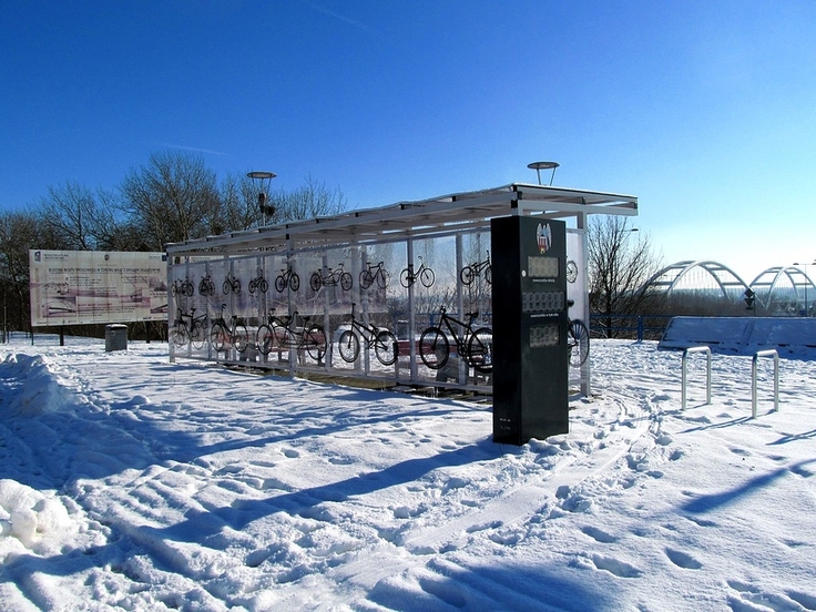 Od kwietnia 2014 roku w Toruniu każdy może skorzystać nie tylko z roweru miejskiego (jest ich 400), ale i ze stacji rowerowej (jest ich 40). Na zdjęciu: Jedna ze stacji rowerowej usytuowana przy pl. Daszyńskiego, tuż przy wjeździe na most im. gen. Elżbiety Zawackiej od wschodniej strony miasta.