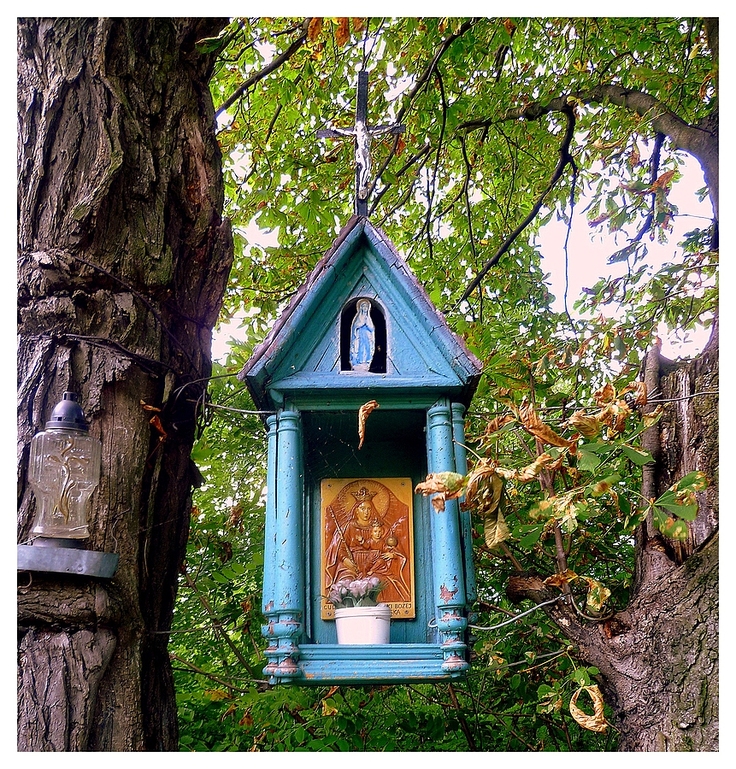 Zgadzam się z Anią:) Piękna kapliczka i tak nietypowo umieszczona. Widziałam już wiele kapliczek, ale kapliczki zawieszonej między drzewami jeszcze nie spotkałam. Pozdrawiam serdecznie:)