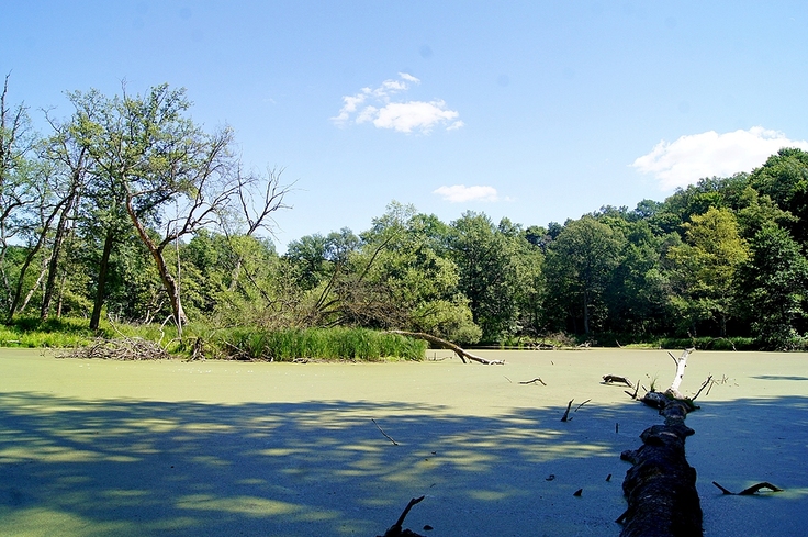...porastają ponad stu letnie dęby niektóre powalił już czas a inne bobry które mają tu swe żeremie ,klony,osiki