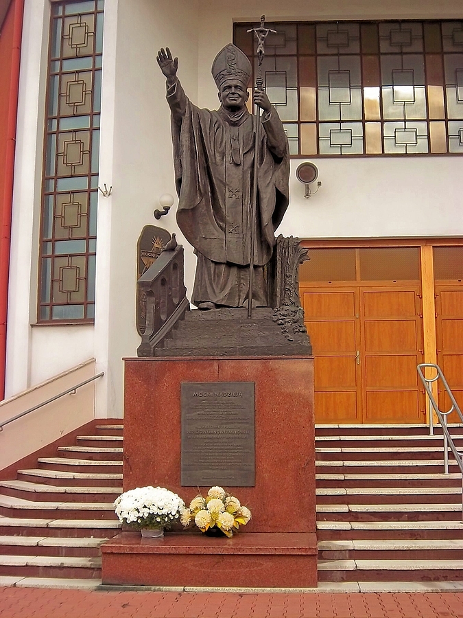 Pomnik papieża Jana Pawła II przed kościołem p.w. Matki Bożej Królowej Polski