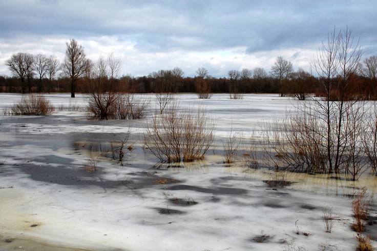 rzeka poszerzyła się wielokrotnie rozlewajac swoje wody na łąki