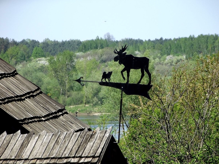 Fajny wiatrowskaz. W Skandynawii, polując na łosie używa się do pomocy łajki lub karjalankarhukoirę (karelski pies na niedźwiedzie), i taki pokrój psa jest widoczny na tym wiatrowskazie. Gratuluję spostrzegawczośći.