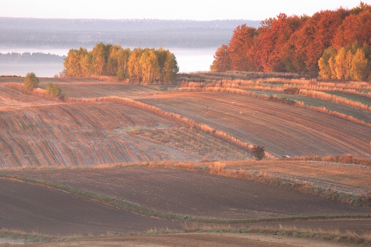 Krajobrazy Roztocza. Antoniówka. Październikowy mgisty poranek