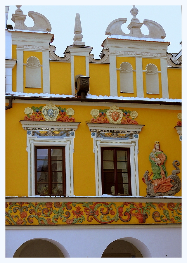 Ormiańska 22 (żółta)  kamienica Pod Madonną lub Sołtanowska. Powstała w połowie XVII wieku w miejscu drewnianej, jaką nabył kupiec Sołtan Sachwelowicz. Posiada bogate dekoracje w stylu manierystycznym i wczesnobarokowym w różnych kolorach, są to m.in. płaskorzeźba przedstawiająca Madonnę z Dzieciątkiem depczącą smoka, pas fryzu pod oknami składający się z kwiatów i owoców, ozdobne obramienia okien wraz z płaskorzeźbami nad nimi oraz attyki z pustymi niszami zwieńczonymi muszlą. W odróżnieniu do sąsiednich kamienic, składa się z dwóch kondygnacji (parter i piętro). Obecnie, wraz z kamienicami od tyłu (przy ul. I. Pereca), zajęta jest przez Liceum Plastyczne i mieści się tu jedna z galerii tej szkoły (Galeria Pod Madonną). [http://www.kurierzamojski.pl/wiadomosci/rynek-wielki-kolejna-kamienica-pieknieje-zdjecia/]