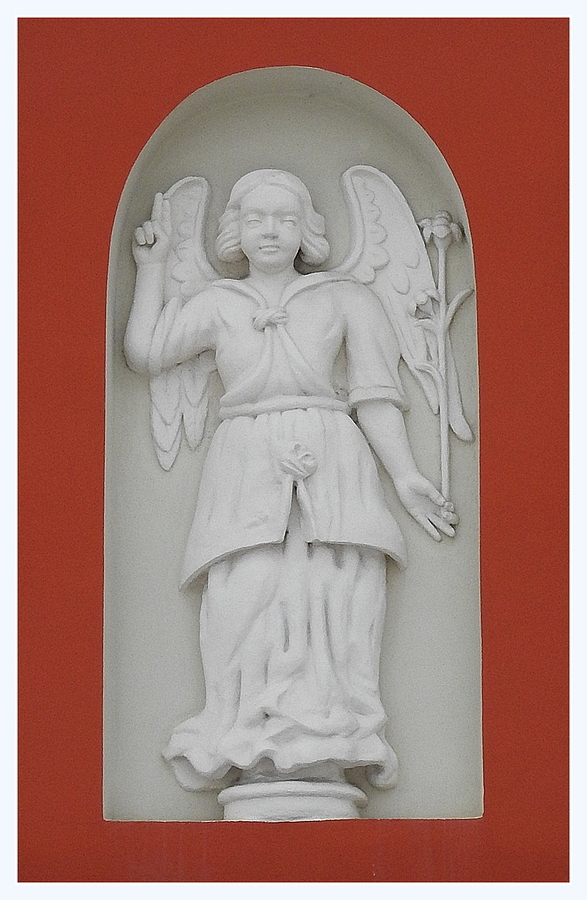 Ormiańska 26 (czerwona) kamienica Pod Aniołem, Pod Lwami lub Bartoszewiczów. Wzniesiona w latach 1632-34 przez jej pierwszego właściciela Gabriela Bartoszewicza. Jest bogato ozdobiona różnymi płaskorzeźbami, są to m.in. dwa lwy oraz smok ze skrzydłami między oknami drugiego piętra a pod nim Archanioł Gabriel w niszy. Posiada też liczne orientalne fryzy roślinne ciągły, szerszy pas nad arkadami i węższy górny nad oknami - oraz osobne nad oknami pierwszego piętra; w każdym znajdują się głowy aniołów (różnej wielkości). Podczas II wojny światowej w tej właśnie kamienicy utworzono Muzeum Miejskie, dlatego tu znajduje się główne wejście do współczesnego Muzeum Zamojskiego.[https://pl.wikipedia.org/wiki/Kamienice_ormia%C5%84skie]
