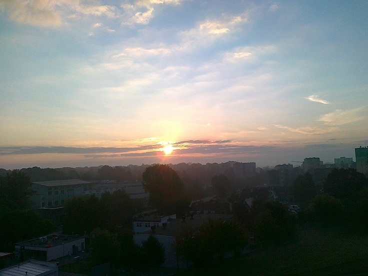 wschód słońca nad miastem