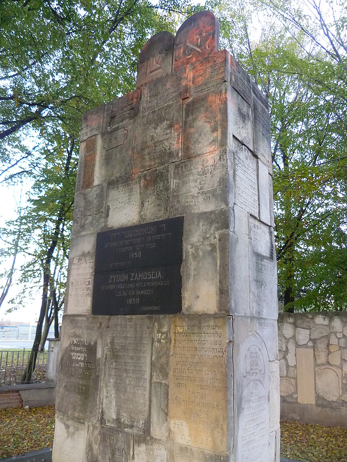 W historii Zamościa były dwa cmentarze żydowskie. Pierwszy z nich - zlokalizowany przy obecnej ul. Partyzantów - powstał pod koniec XVI lub na początku XVII wieku. Drugi cmentarz żydowski w Zamościu został założony w 1906 roku. Obie nekropolie zostały zniszczone przez nazistów podczas II wojny światowej. W latach powojennych na terenie nowego cmentarza przy ul. Prostej z zachowanych macew wzniesiono lapidarium, zwieńczone tablicami mojżeszowymi z wyrytym przykazaniem Nie zabijaj.
