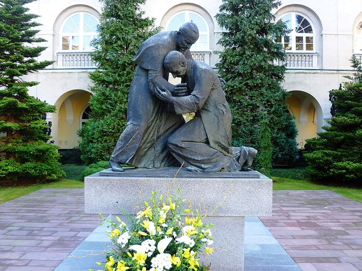 pomnik Jana Pawła II i prymasa Wyszyńskiego na dziedzińcu KUL