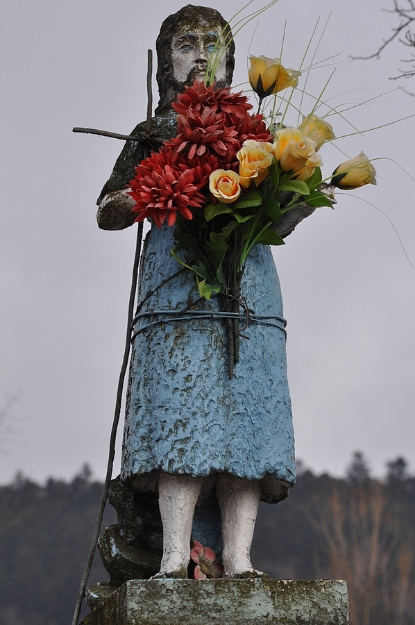 Niezwykła figura, postać w spódnicy a twarz z brodą i wąsami ?