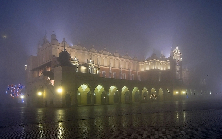 Sukiennice w nocnej mgle