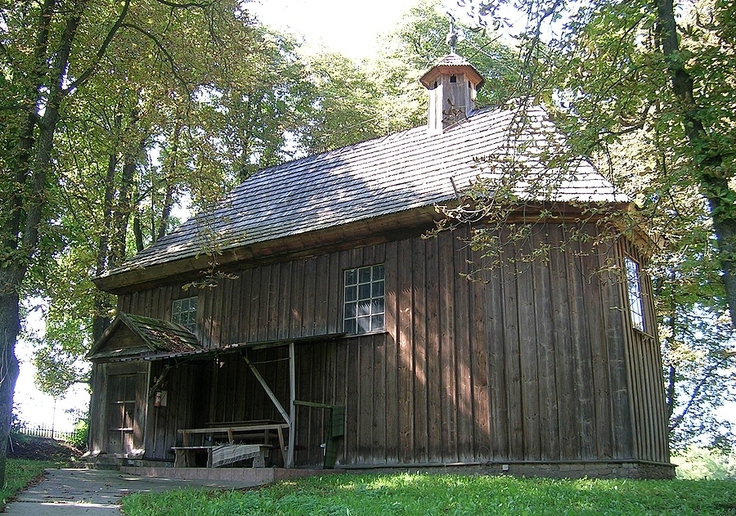 Położona na lekkim wzniesieniu, zniszczona w 1560 r. przez różnowierców. Obecna pochodzi z 1652 r. Wnętrze ozdobione jest polichromią renesansową, chór murowany, późnobarokowy.